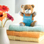 Miś pluszowy w kolorowym ubranku.