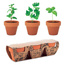 Zestaw 3 glinianych doniczek z terakoty, w tym nasiona 3 różnych ziół: mięty, pietruszki i bazylii. Wyprodukowane w EU.