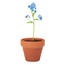 Mała gliniana doniczka z terakoty z nasionami niezapominajki. Wyprodukowane w EU.
