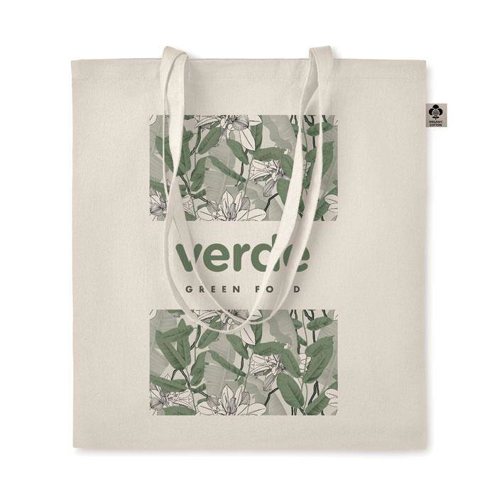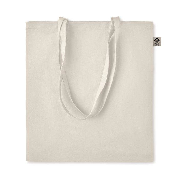 Torba na zakupy z bawełny organicznej z długimi uchwytami. 140 gr / m².