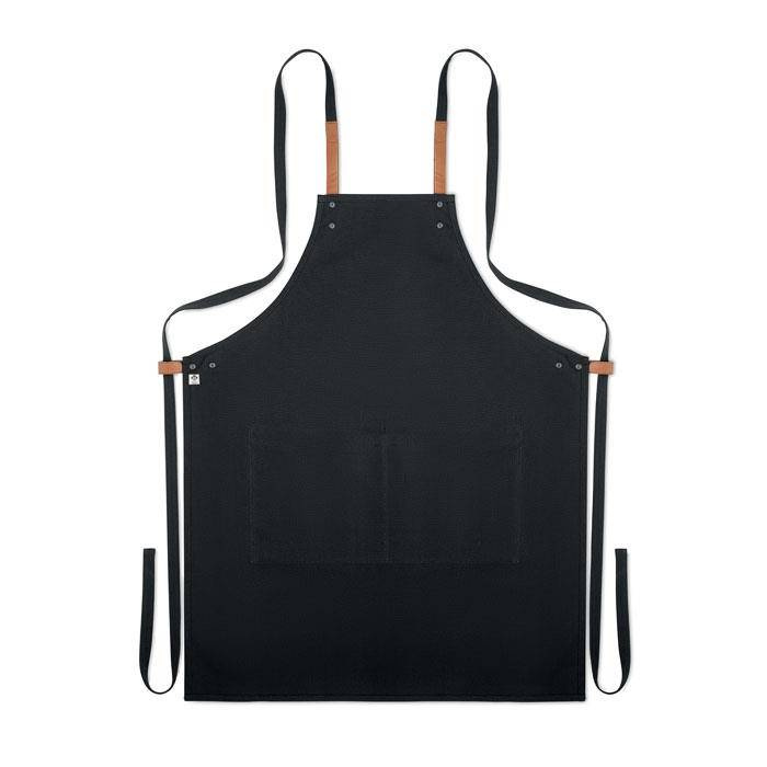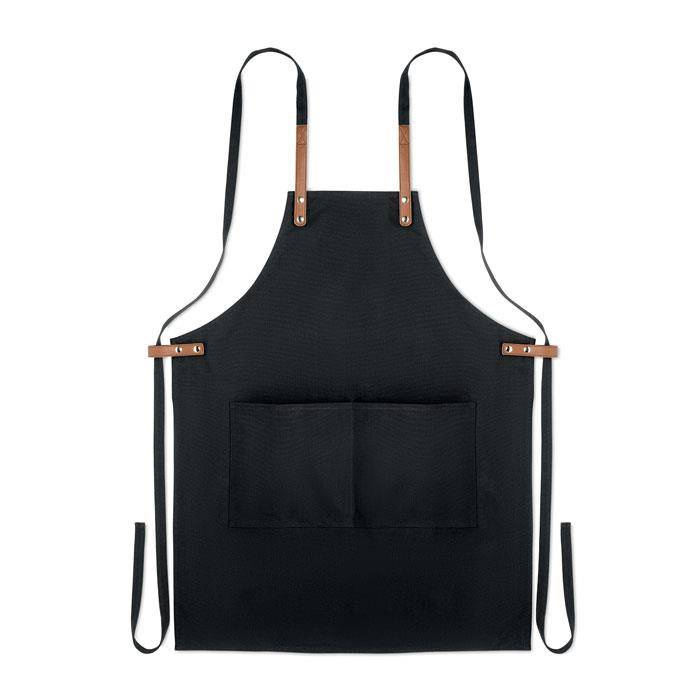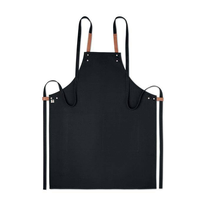 Regulowany fartuch kuchenny z 3 kieszeniami z przodu, z dżinsu 240 gr/m² z bawełnianymi paskami.