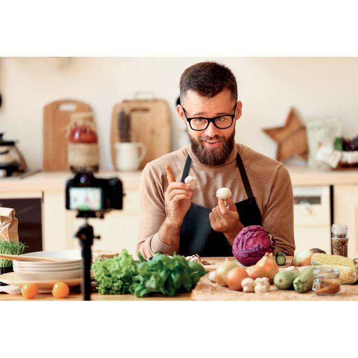 Regulowany fartuch kuchenny z 3 kieszeniami z przodu, z dżinsu 240 gr/m² z bawełnianymi paskami.