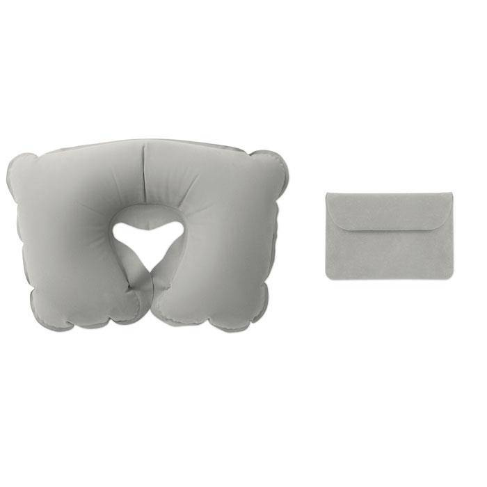 Nadmuchiwana poduszka podróżna w welwetowym etui.