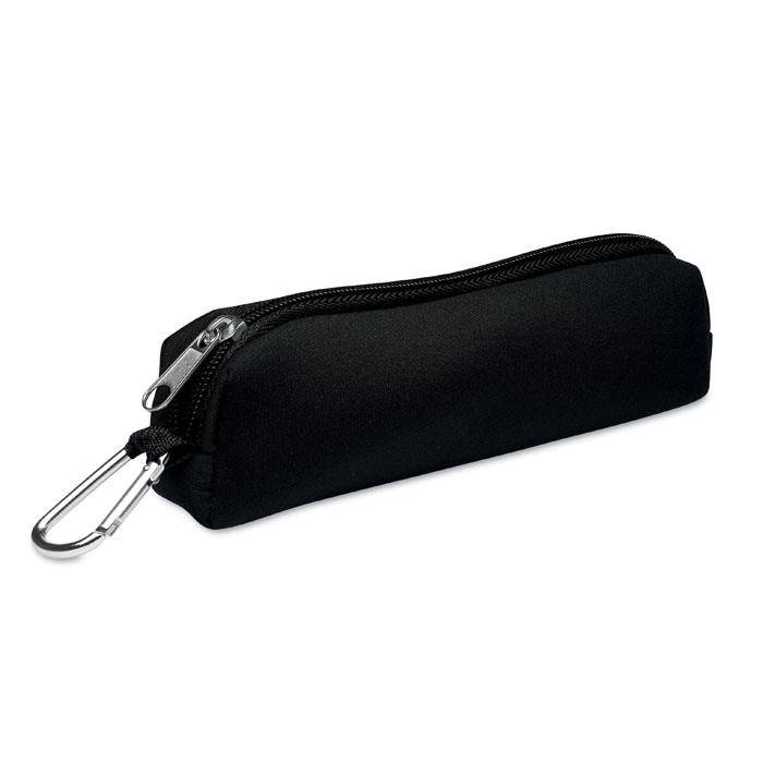 Piórnik wykonany z piankowej tkaniny z karabinkiem.