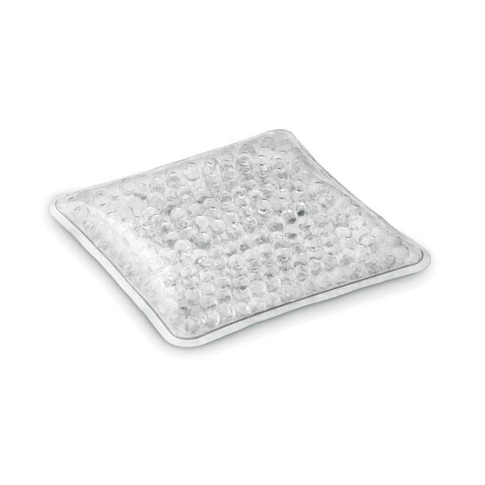 Okład chłodząco-ogrzewający, wypełniony żelowymi kulkami umieszczonymi w przeźroczystym PVC.