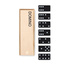 Plastikowe domino zapakowane w drewniane pudełko.