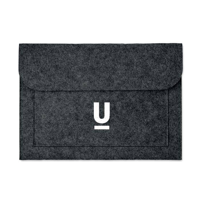 Torba na dokumenty lub na laptop 15cali, z filcu RPET , grubość 2 mm, z przednią kieszenią i zapięciem na rzep.