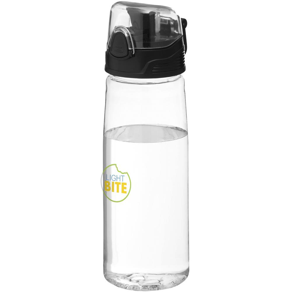 Butelka z przyciskiem, zdejmowanym wieczkiem oraz ustnikiem.