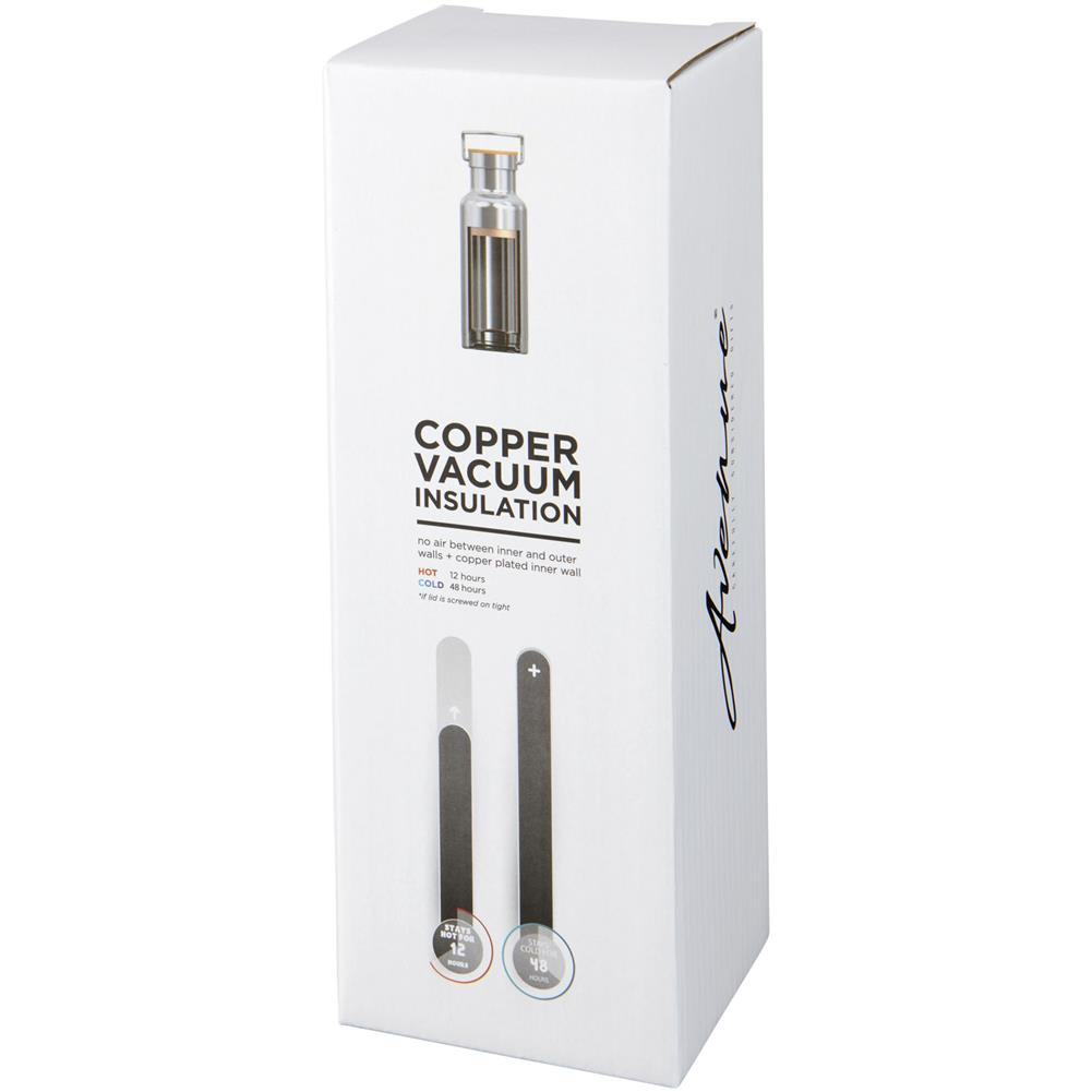 Dwuwarstwowa konstrukcja ze stali nierdzewnej z izolacją miedzianą zapewnia utrzymanie niskiej temperatury napoju przez 48 godzin i wysokiej przez co najmniej 12 godzin.