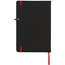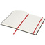 Każdy notes ma kolorowy pasek do zamykania, pętelkę na długopis i zakładkę ze wstążki.