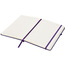 A5 reference size notebook with a matching colour elastic closure, pen loop, and ribbon.