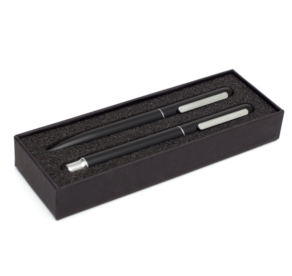 Zestaw składający się z aluminiowego długopisu i pióra kulkowego.