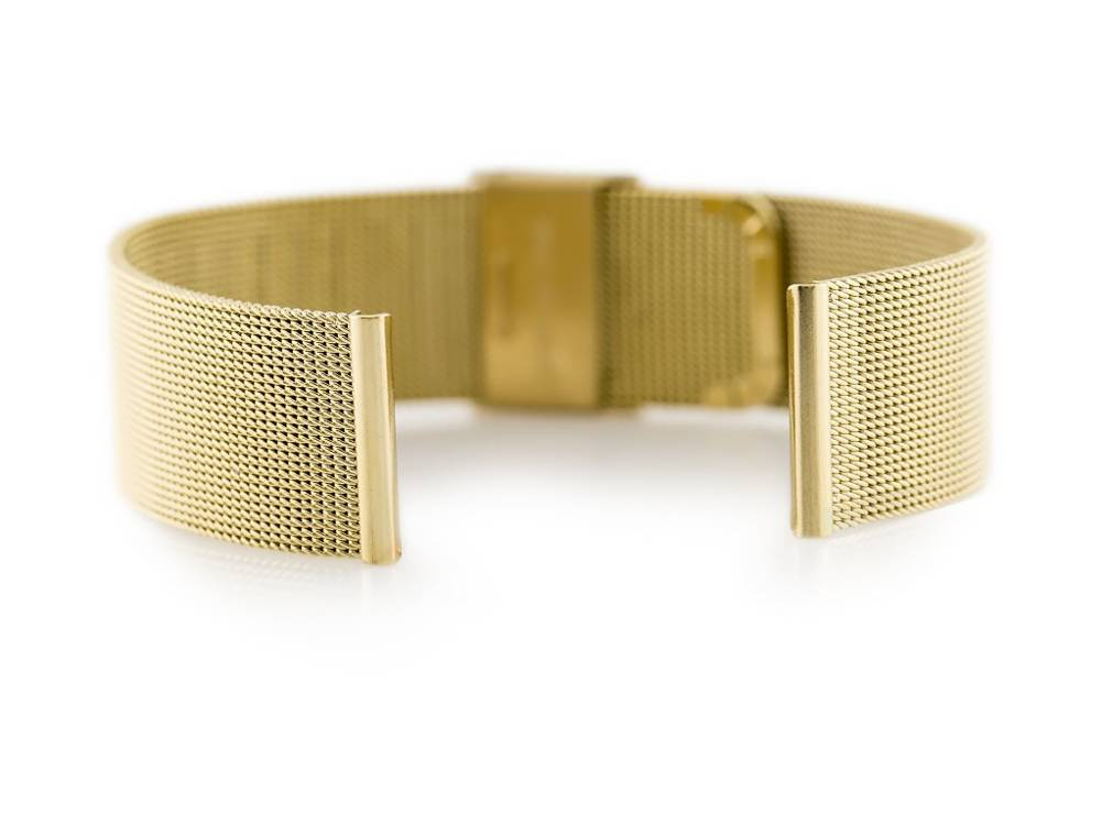 Metalowa bransoletka wysokiej jakości typu "siatka" w kolorze złotym z możliwością regulacji.