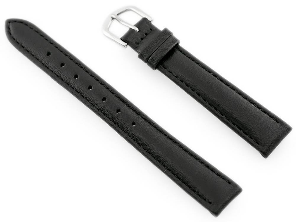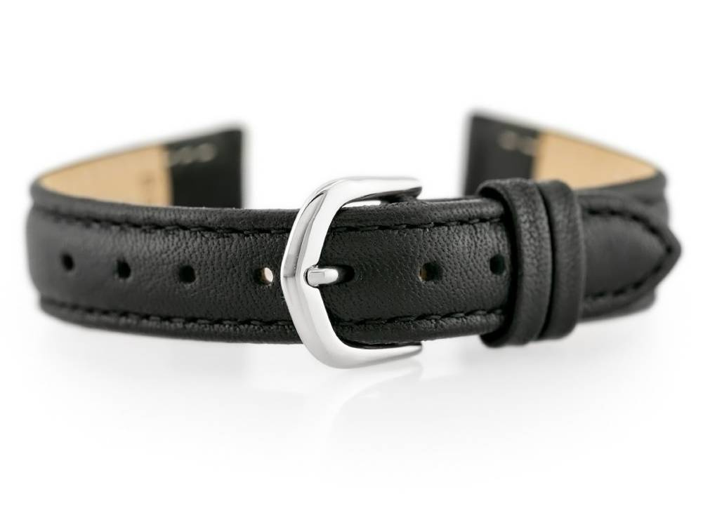 Pasek ze skóry naturalnej w kolorze czarnym z czarnymi przeszyciami. Klamerka metalowa w kolorze srebrnym.
