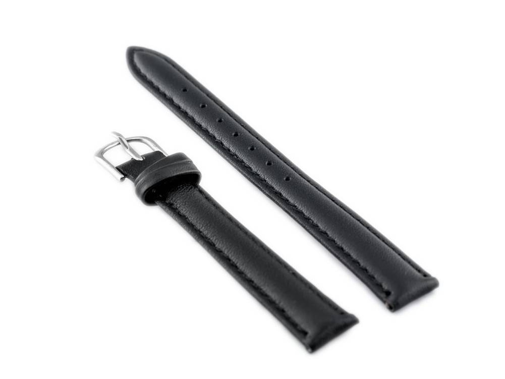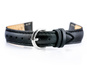 Pasek ze skóry naturalnej w kolorze czarnym z czarnymi przeszyciami. Klamerka ze stali szlachetnej w kolorze srebrnym.