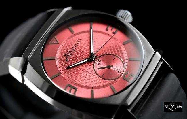 Pasek i koperta w kolorze czarnym, tarcza w kolorze łososiowym