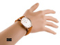 Kolorystyka: pasek w kolorze jasnobrązowym, koperta i indeks w kolorze rosegold, tarcza w kolorze srebrnym