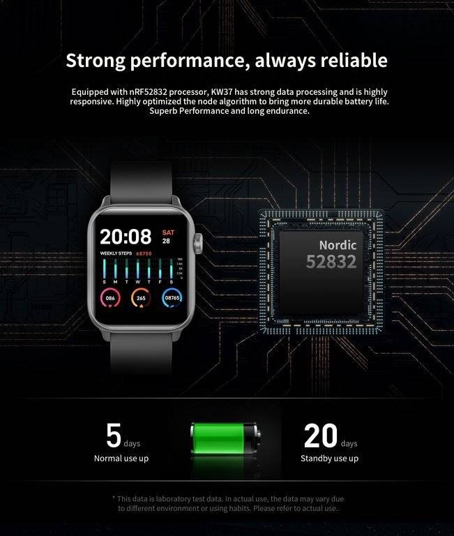 Wysokiej jakości w pełni dotykowy wyświetlacz cyfrowy 1.3" cala TFT. Rozdzielczość: 240*240 pikseli 64KB RAM + 512KB ROM + SPI rozszerzona 64MB. Funkcje: Energooszczędny Bluetooth Chip wersja 4.0, monitor tętna, ciśnieniomierz, monitor tlenu we krwi, krokomierz, inteligentny monitoring snu, monitor cyklu dobowego, budzik stoper, timer rejestr spalonych kalorii, rejestr przebytego dystansu, 7 trybów treningu do wyboru, sterowanie muzyką, zdalne zdjęcie, tryb nie przeszkadzać, powiadomienia o wiadomościach z telefonu, przypomnienia i inne.