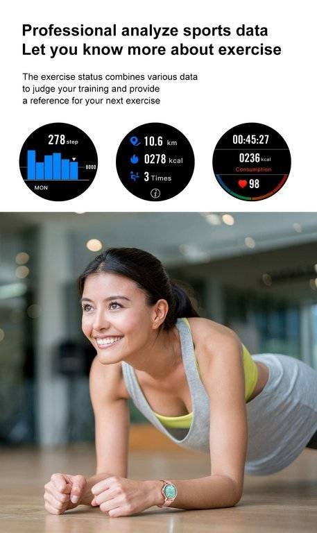 Smartwatch pozwala wykorzystać specjalną aplikacje dzięki, której ustawisz wszystkie niezbędne parametry oraz swoje cele aktywności. Oferuje automatyczny zapis między innymi pomiarów pulsu, jakości snu oraz przebytych dystansów.