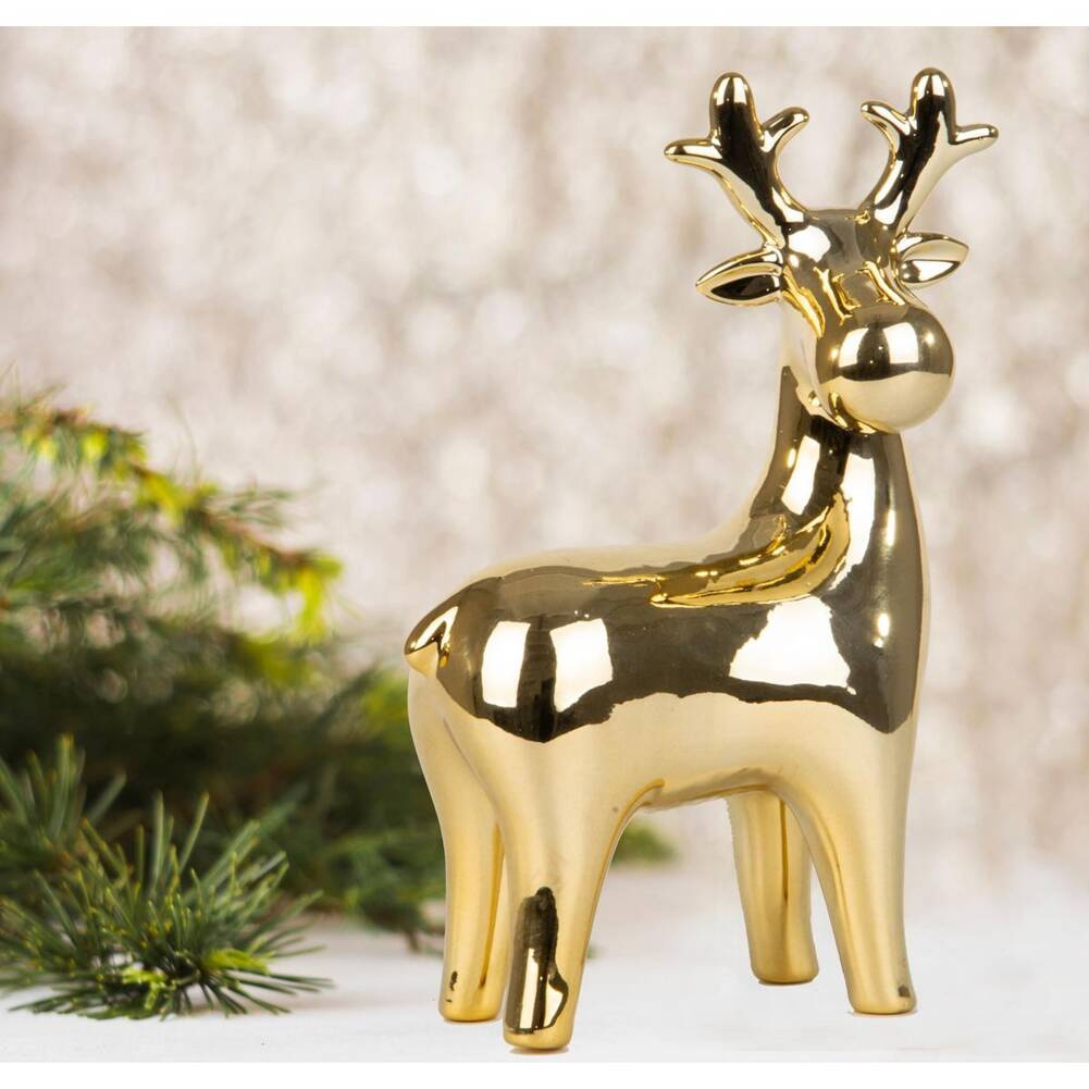 Uroczy i pełen przytulnego klimatu figurka świąteczna RENIFER o ciepłej barwie to element naszej wyjątkowej serii ozdób świątecznych marki SASKA GARDEN.