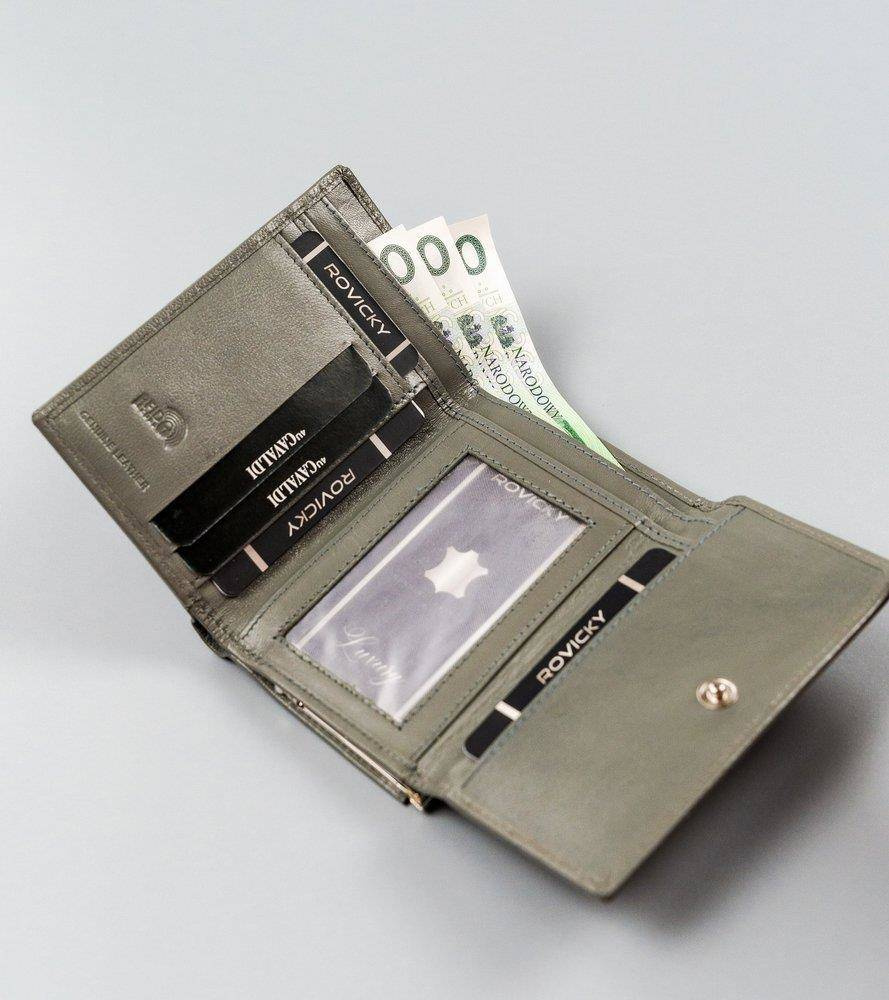 Portfel, choć jest średniej wielkości, jest pojemny. Zaprojektowano go w taki sposób, że z powodzeniem spełnia podstawowe potrzeby. Zmieścisz w nim bez trudu gotówkę, karty i dokumenty.