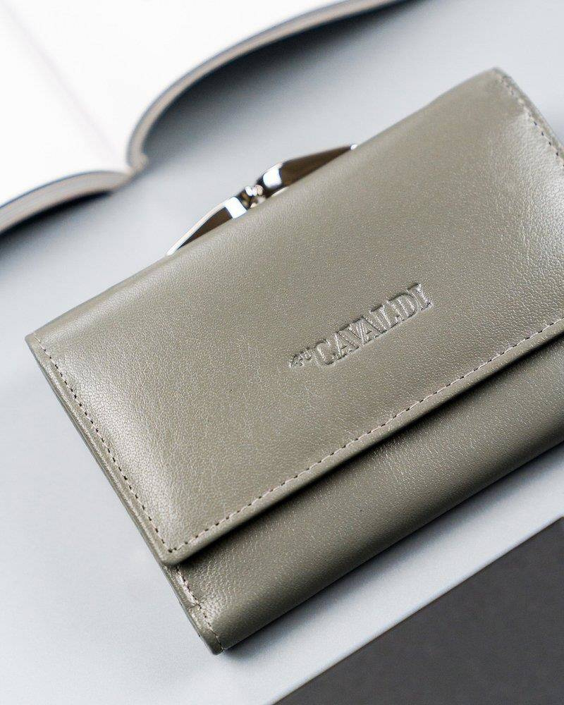 Portfel damski ze skóry naturalnej z portmonetką na bigiel, RFID — Cavaldi