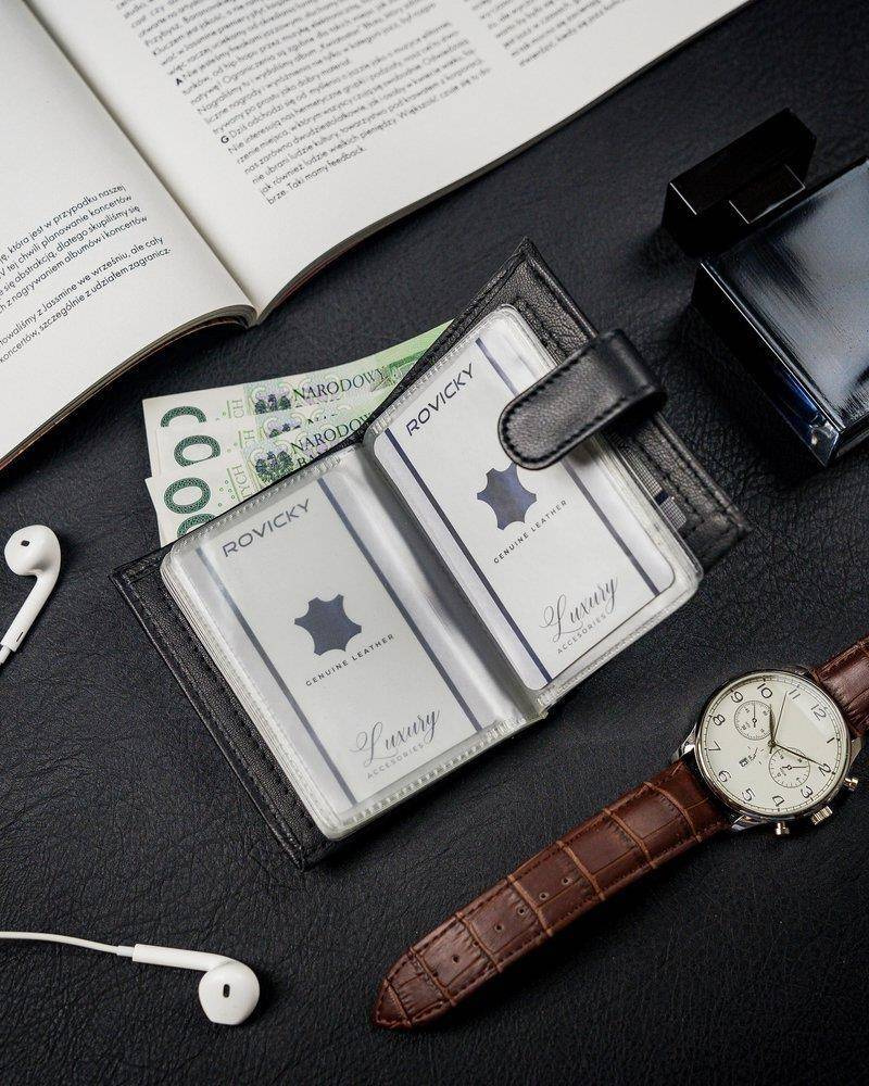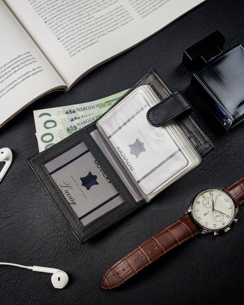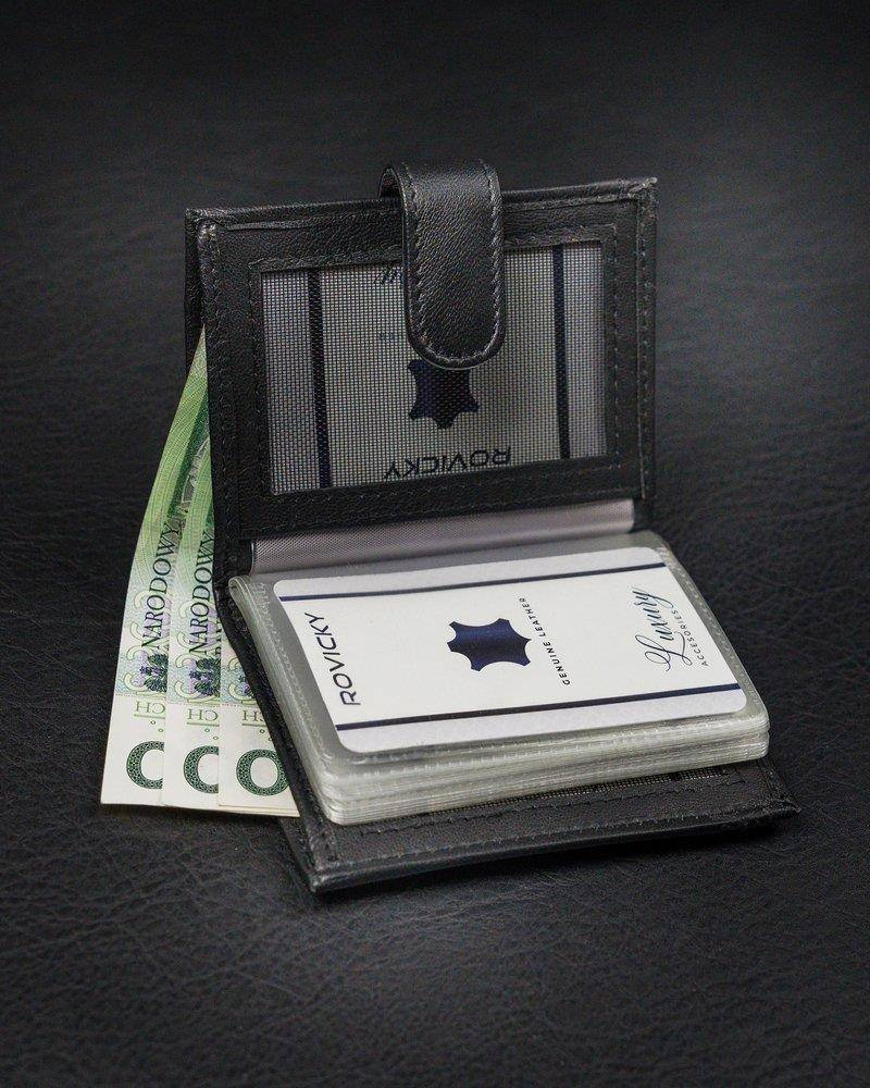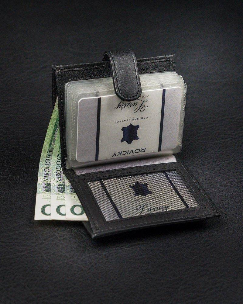 Pionowe, skórzane etui na karty z zapinką i kieszenią na banknoty — Pellucci