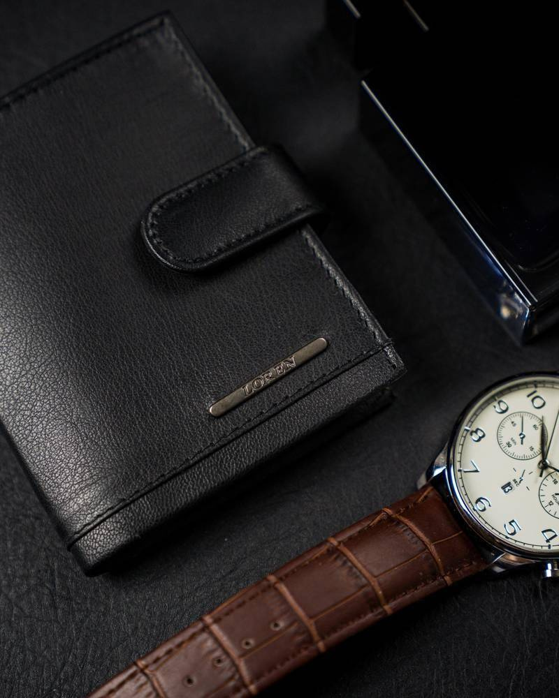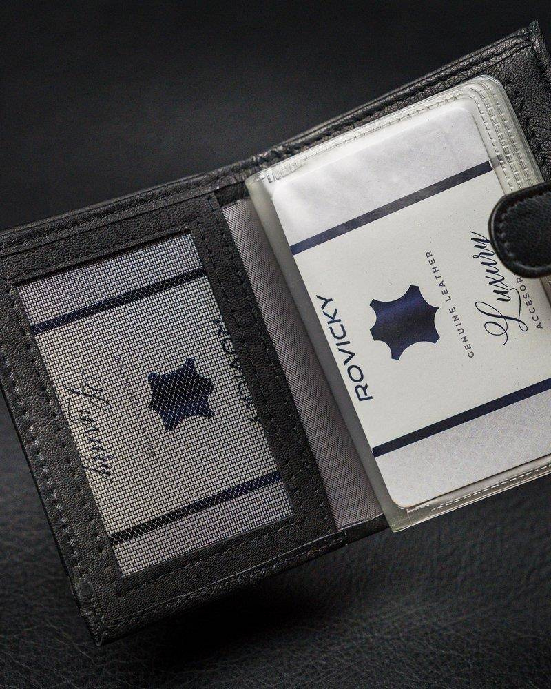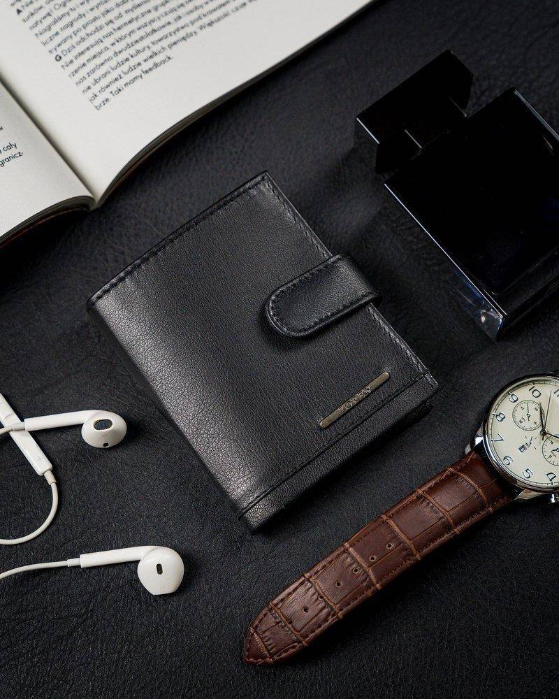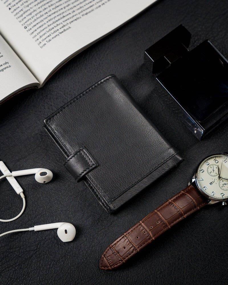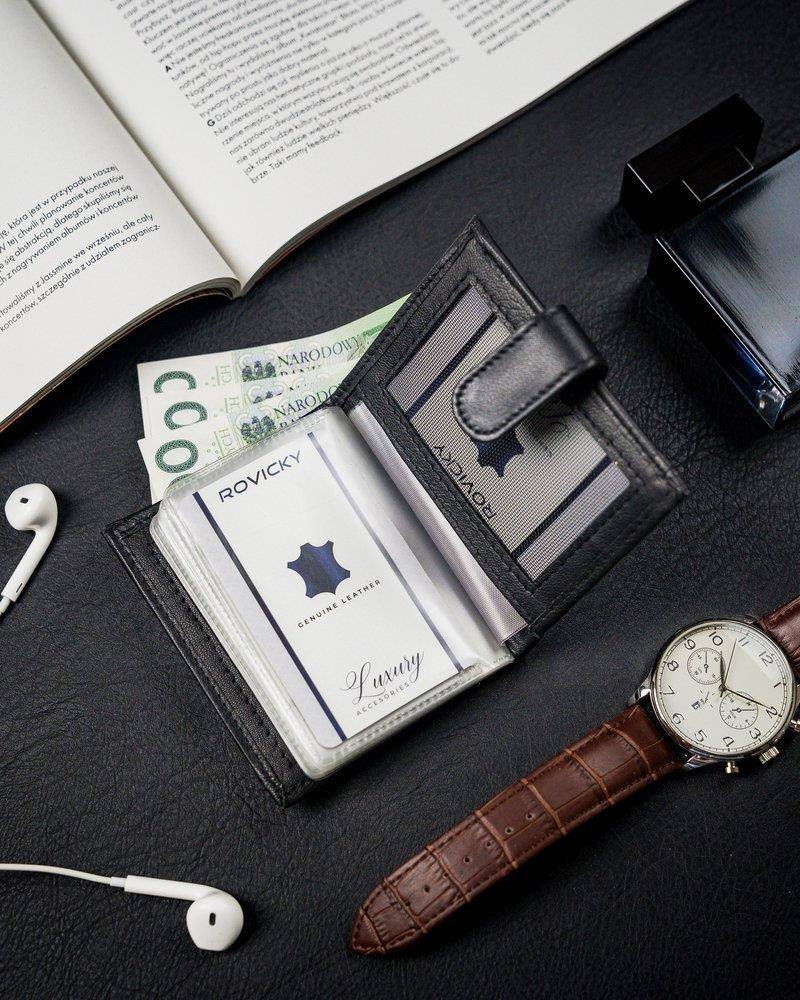 Pionowe, skórzane etui na karty z zapinką i kieszenią na banknoty — Pellucci