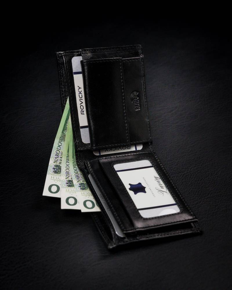 - 2 szerokie, otwarte kieszonki na banknoty. Taka ilość kieszeni pozwoli Ci na umieszczenie w portfelu pokaźnej ilości gotówki w wersji papierowej. Również taka ilość przegródek umożliwi Ci dodatkowo pogrupowanie pieniędzy na waluty, jeżeli korzystasz nie tylko z polskich złotych.