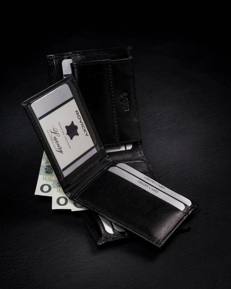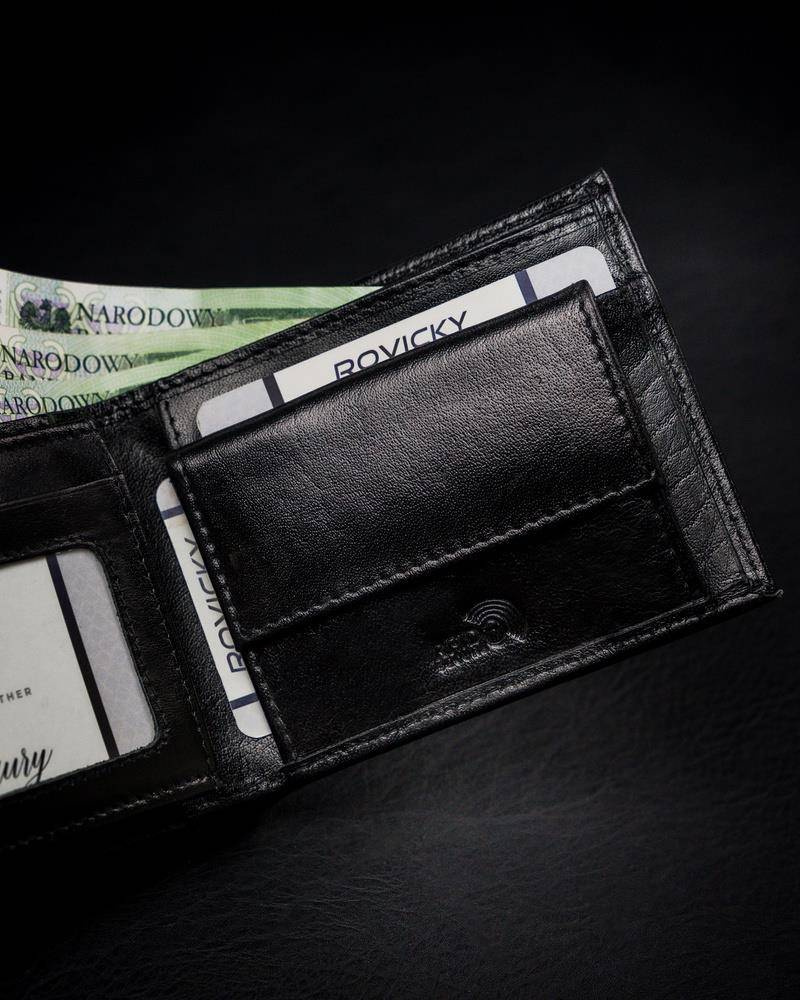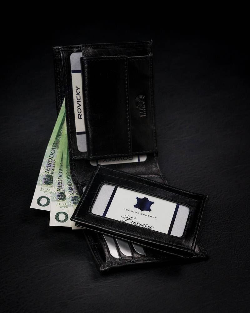 Wyposażony w technologię RFID STOP, która chroni portfel przed złodziejami używającymi czytniku do kart.