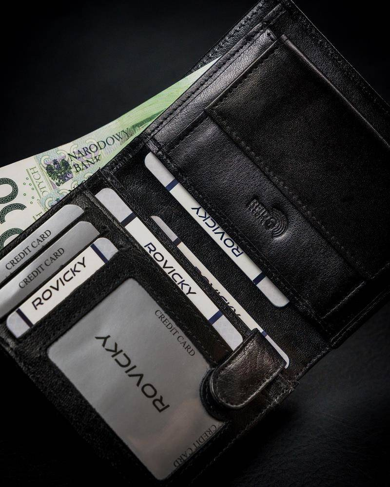 Wyposażony w technologię RFID STOP, która chroni portfel przed złodziejami używającymi czytniku do kart.