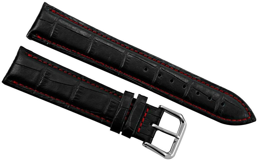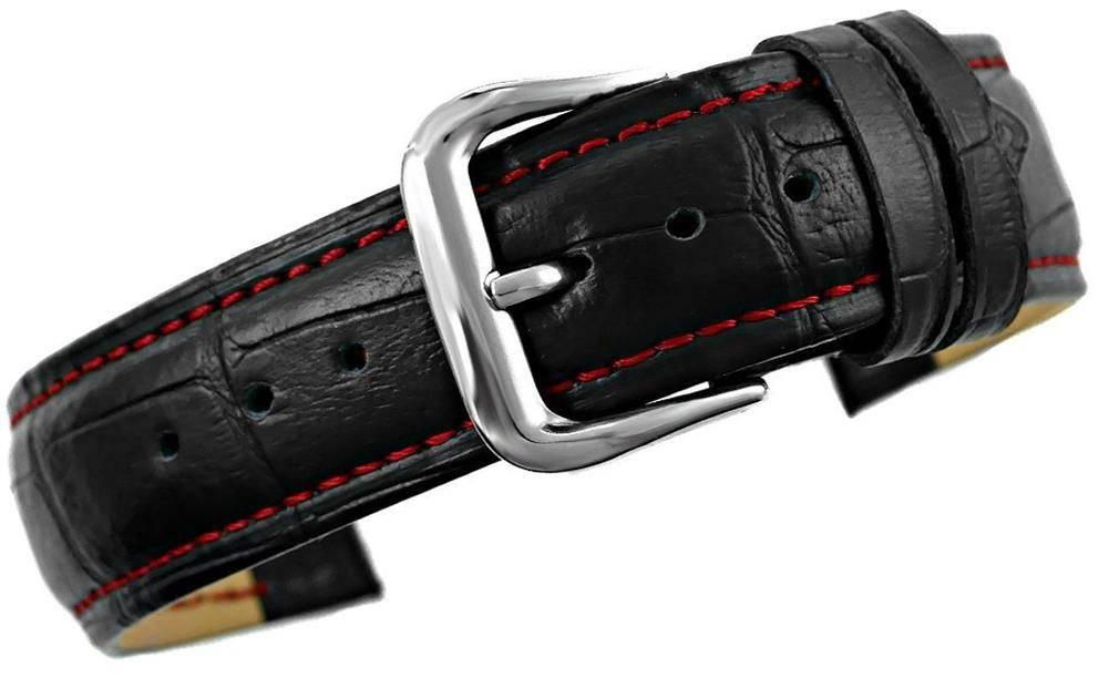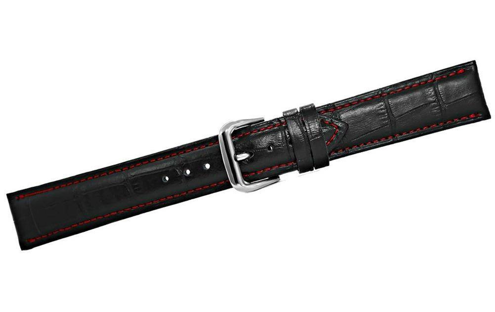 Pasek do zegarka - Skóra 20 mm - Czarny czerwona nitka