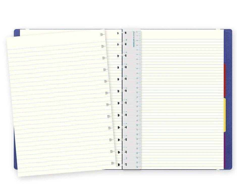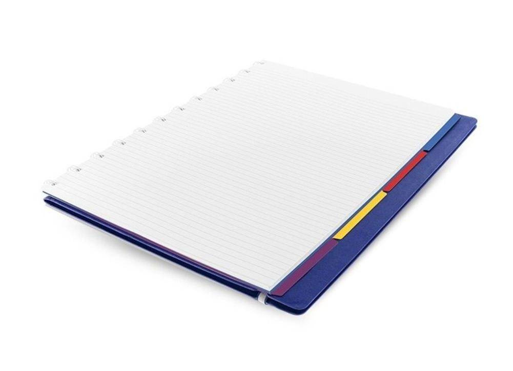 Notebook fILOFAX Classic to notatnik w rozmiarze A4 z okładką z ekoskóry w kolorze niebieskim, zamykany elastycznym zapięciem. Posiada sprytną konstrukcję, która pozwala na łatwe dodawanie, wyjmowanie lub zmianę położenia stron w celu indywidualnej personalizacji. W przeciwieństwie do większości innych notebooków, również się składa i leży idealnie płasko po otwarciu.