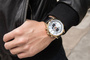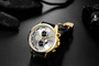 Całość dopełniają czarny pasek oraz koperta w kolorze złota, które dodają elegancji. Klasa wodoszczelności czasomierza to WR30.