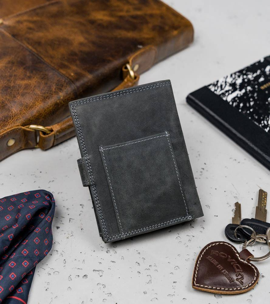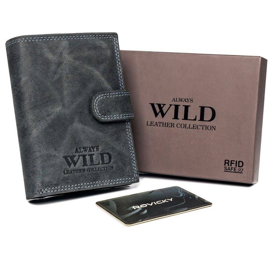Pionowy, zapinany portfel męski z zewnętrzną kieszonką na kartę — Always Wild