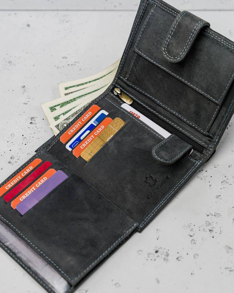 Przegródki na karty i dokumenty są zabezpieczone podszewką. Pozwala to uniknąć otarć na skórze, podczas wkładania i wyjmowania kart niezliczoną ilość razy.