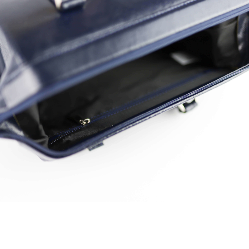 W środku znajduje się jedna komora. Na jednej ze ścianek stworzyliśmy długą kieszeń, gdzie jest miejsce na tablet, zeszyt, słuchawki lekarskie czy recepty.