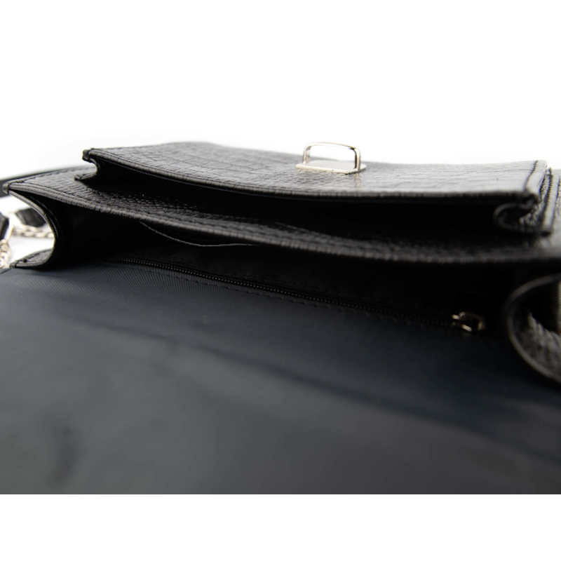 Oczywiście dodaliśmy 2 praktyczne kieszonki. Jedna skórzana, druga uszyta przez cała wewnętrzną długość torebki zasuwana na zamek.
