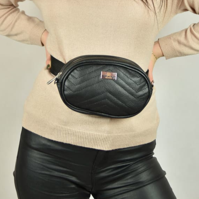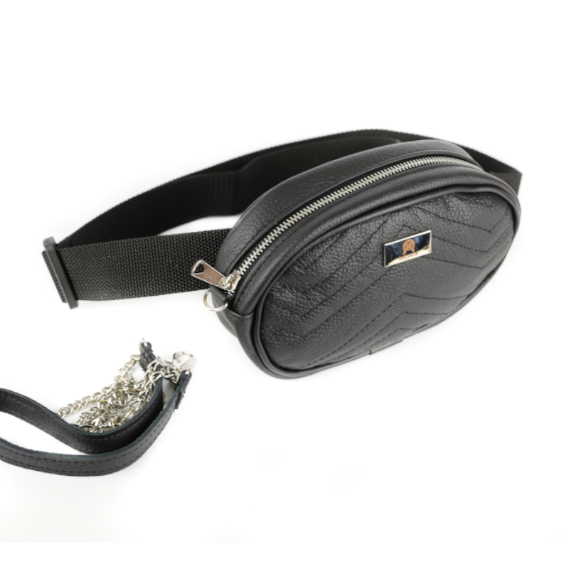 Po bokach do torebki umocowany jest odpinany na karabińczyki łańcuszek. Naszą nerko-torebkę zrobimy dla Ciebie z kilkunastu kolorów i wzorów skór bydlęcych.