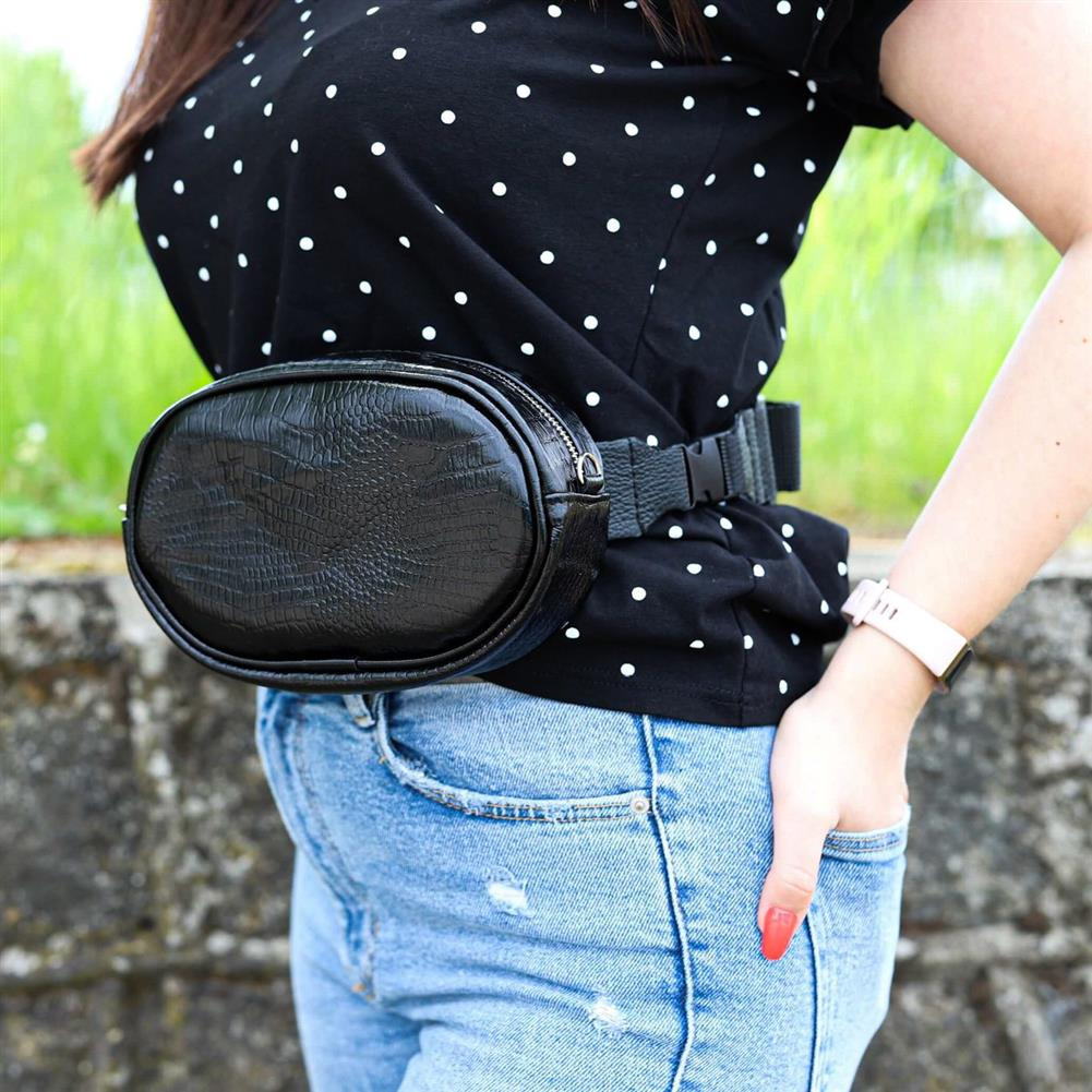 Z tyłu nerki przyszyliśmy tunelik, przez który przełożony jest parciany, regulowany pasek. Możesz również przełożyć swój własny pasek!