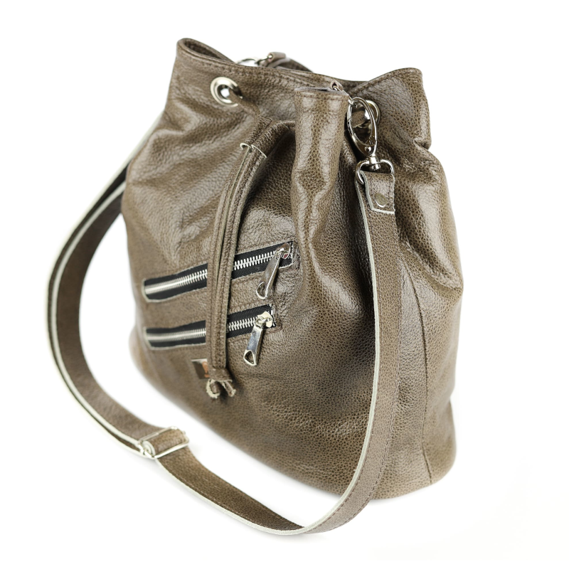 Z przodu naszyliśmy 2 ozdobne kieszonki zasuwane na niklowy suwak. Wewnątrz znajduje się skórzana kieszonka, z przeznaczeniem na Twojego smart-fona, by miał swoje wyjątkowe miejsce w torebce.