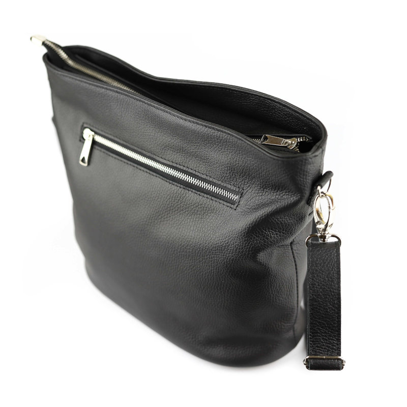 Naszyliśmy tam skórzaną kieszonkę, z myślą o Twoim smartfonie, byś nigdy go nie zgubiła. Po przeciwnej stronie kieszonka zasuwana na zamek. Tam ukryjesz klucze, słuchawki, gumy do żucia itp.