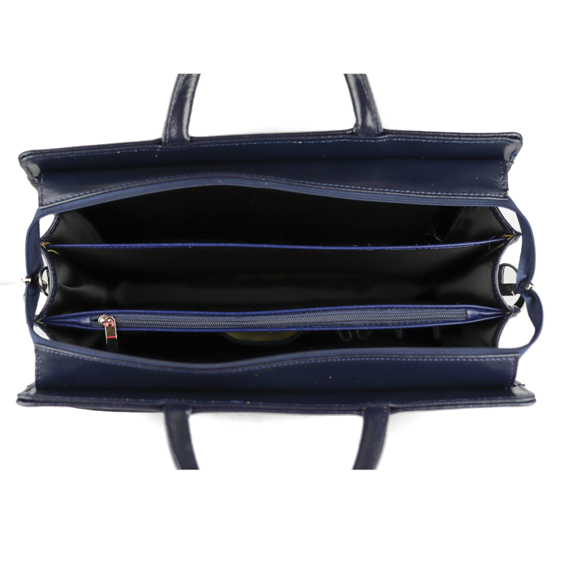 Jest jedną z najbardziej pakownych teczek. Wewnątrz znajdują się trzy komory. Druga i trzecia oddzielone są od siebie za pomocą przegrody zasuwanej na suwak.