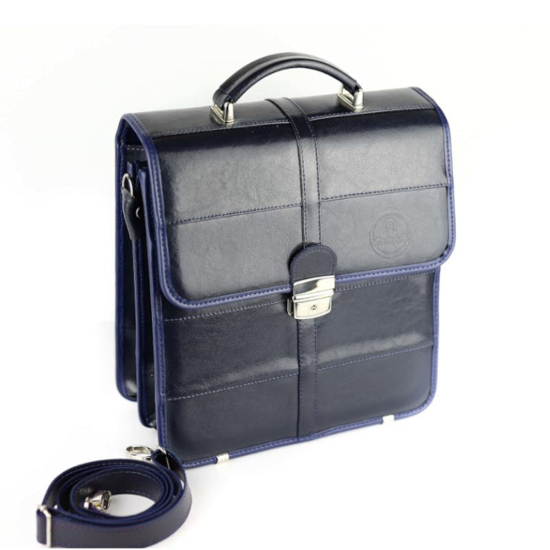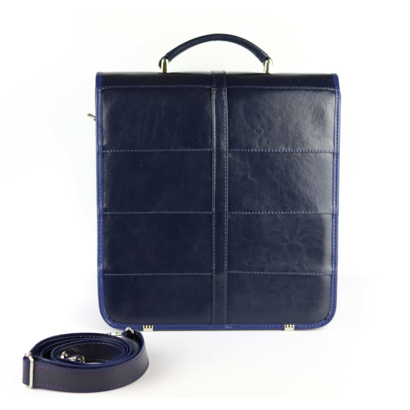 W teczce zmieścisz format A4, tablet czy notebook. Po bokach przymocowaliśmy skórzane uchwyty, do których przypięty jest skórzany pasek.