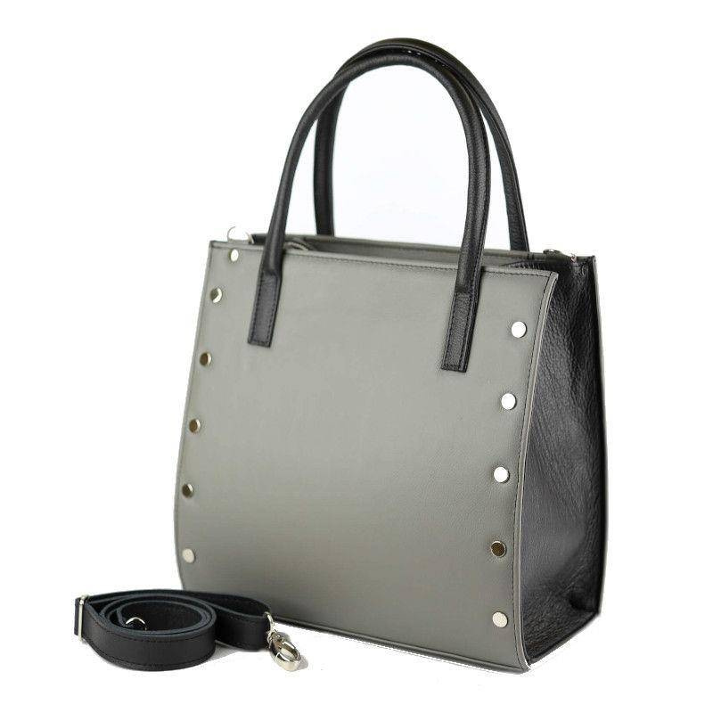 Aga wyróżnia się wyjątkowym designem. Z przodu po dwóch stronach ma niklowe płaskie ćwieki, które nadają jej charakteru i drapieżności.