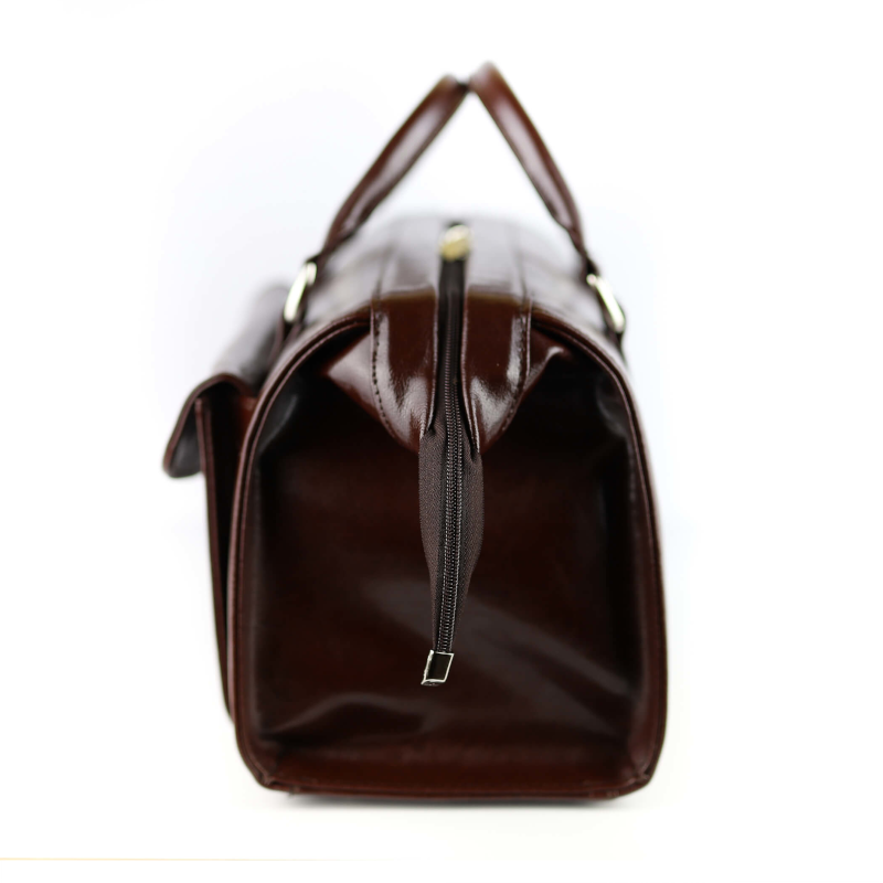 W środku znajduje się jedna komora. Na jednej ze ścianek stworzyliśmy długą kieszeń, gdzie jest miejsce na tablet, zeszyt, słuchawki lekarskie czy recepty.