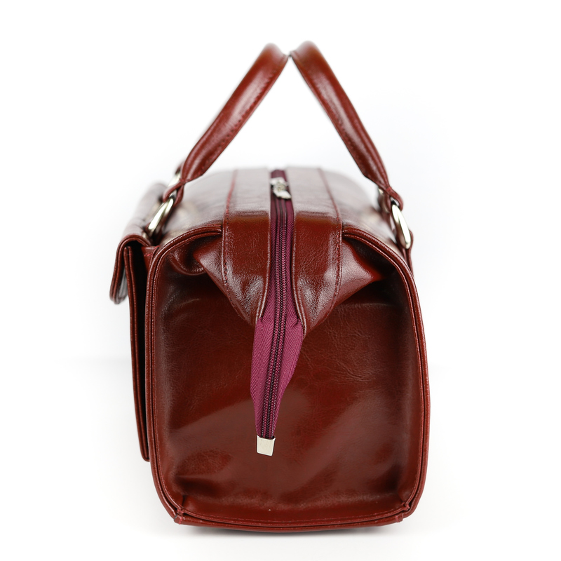 W środku znajduje się jedna komora. Na jednej ze ścianek stworzyliśmy długą kieszeń, gdzie jest miejsce na tablet, zeszyt, słuchawki lekarskie czy recepty.