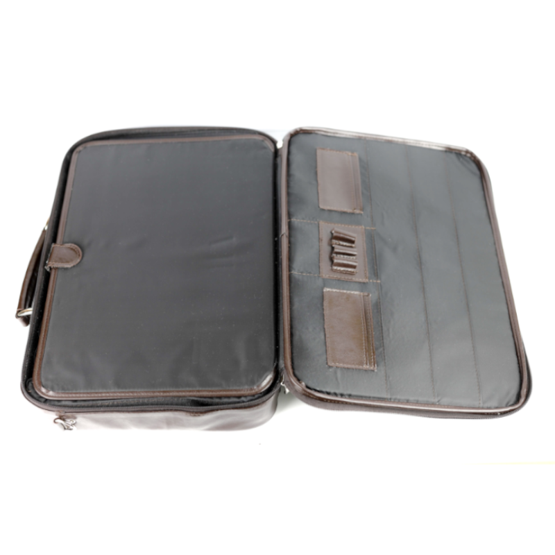 Schowasz tam swój portfel, klucze czy telefon. Laptopówka opinana jest dookoła zamkiem. Od spodu okuliśmy teczkę czterema metalowymi stópkami, które chronią przed otarciami.