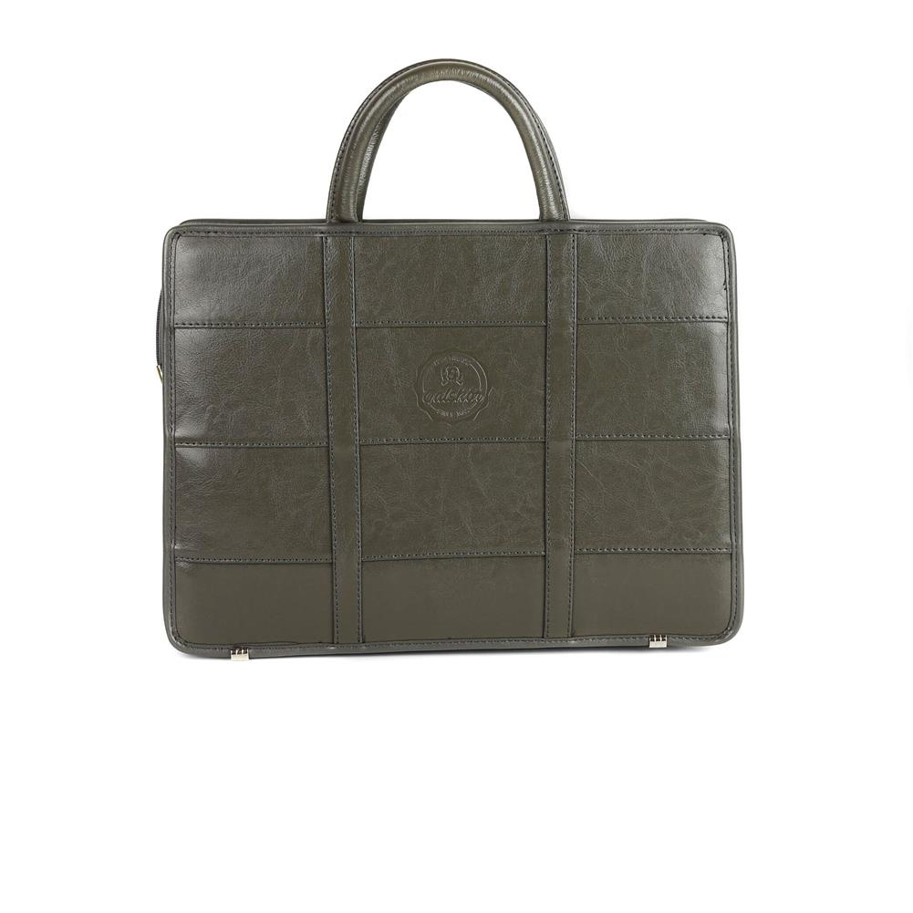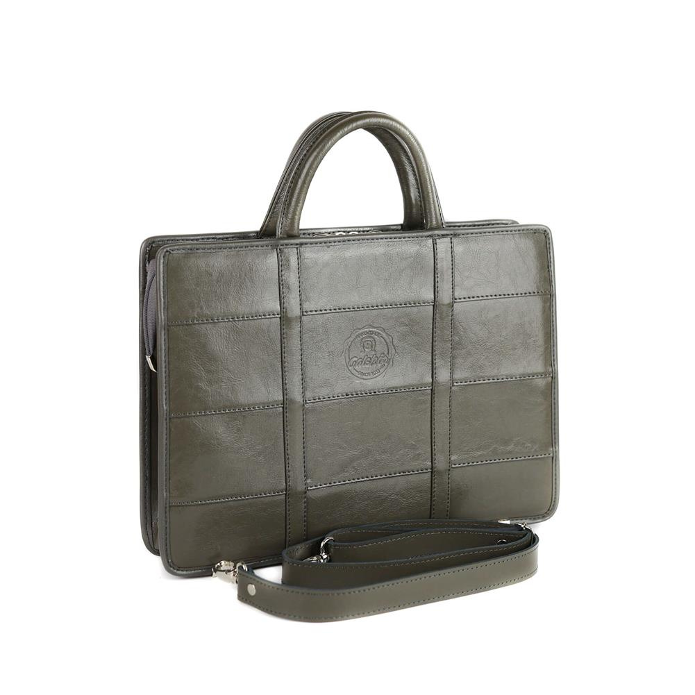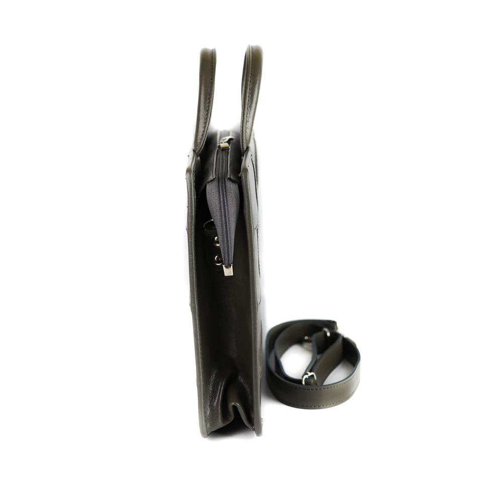 Po bokach teczka ma doczepione skórzane uchwyty, do których możesz przyczepić pasek, będący w zestawie.