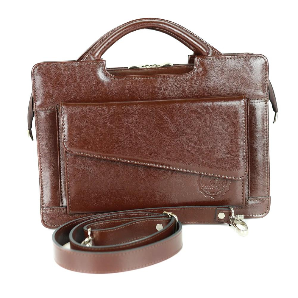 Teczkę możesz nosić w dłoni lub na ramieniu, bo dodaliśmy do niej skórzany pasek, odpinany na niklowe karabińczyki.